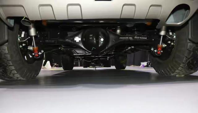 再看脚下:防脱圈轮辋+专业越野胎。 这又是越野改装里的“硬通货”和“年检头疼项”。防脱圈是为了在沙漠岩石路段可以大胆给轮胎放气,增加接触面而不脱圈;专业的越野胎更是直接决定了抓地力。这一套自己弄,好几万又没了,还得担心验车。现在原厂标配,行驶证上就这么写,完美避开所有麻烦。