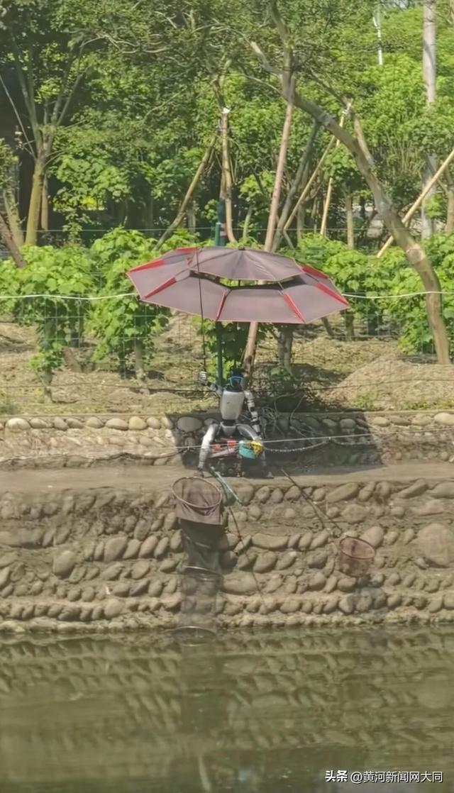 据多家媒体发布的视频显示,遮阳伞下,一台人行机器人坐在钓箱上,在它身边,鱼护、抄网一应俱全。随着机器人的手臂轻轻扬起,一条鱼也被钓出水面。