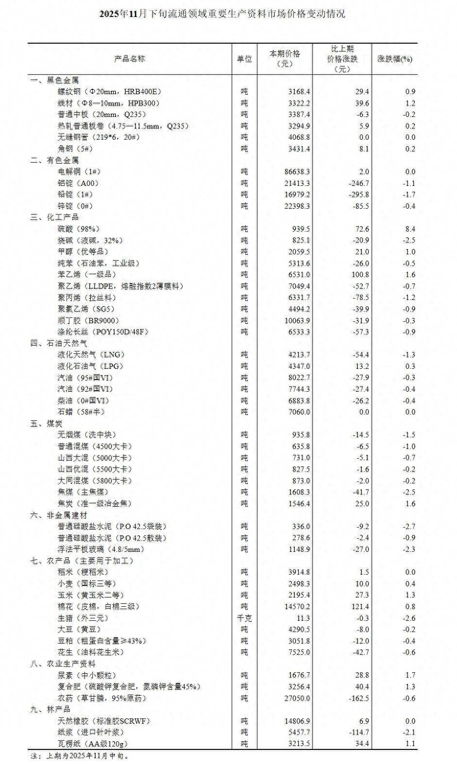 智通财经APP获悉,12月4日,国家统计局数据显示,据对全国流通领域9大类50种重要生产资料市场价格的监测,2025年11月下旬与11月中旬相比,15种产品价格上涨,30种下降,5种持平。其中,生猪(外三元)价格环比下降2.6%道正网 ,焦煤(主焦煤)环比下降2.5%。